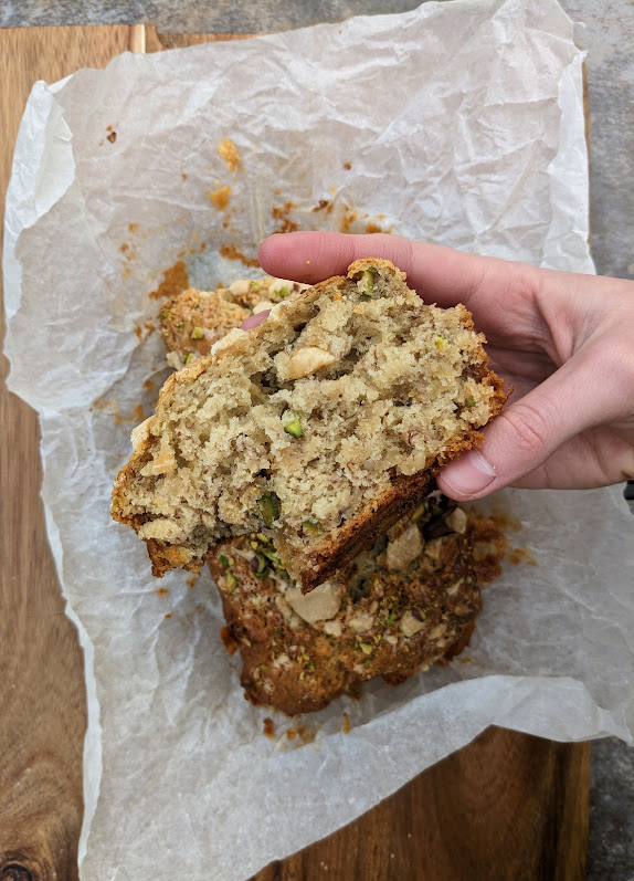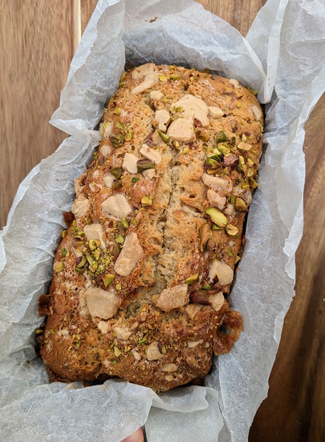 ~Fluffy banana bread loaded with white choc and pistachios ~