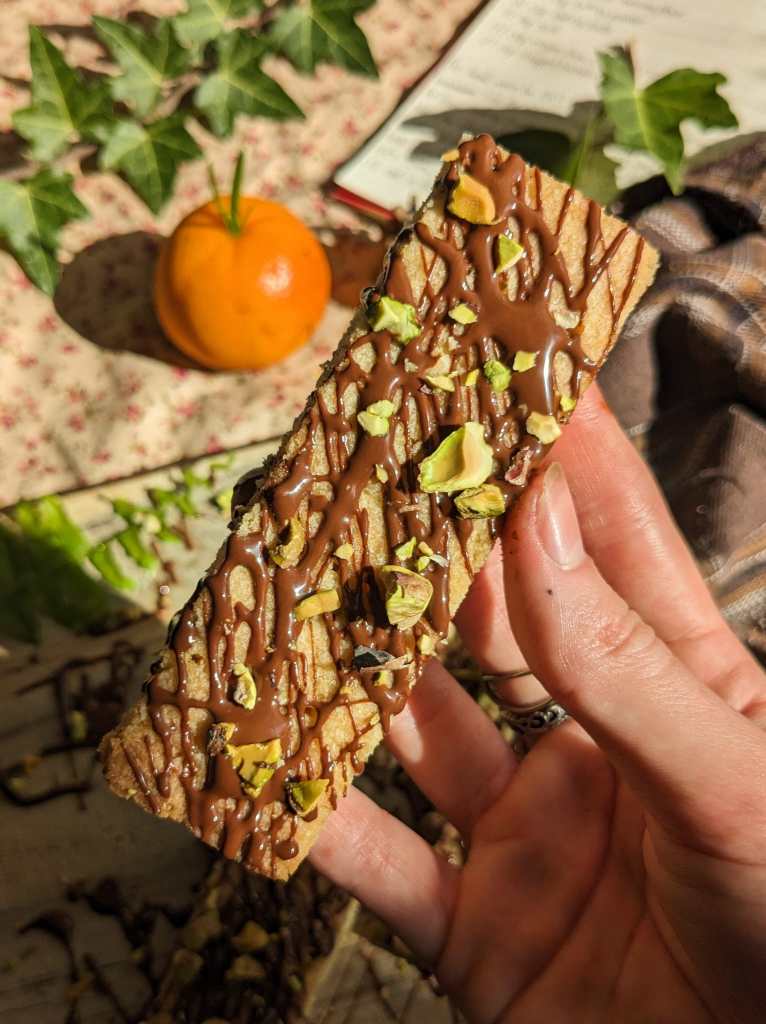 - chop up vegan chocolate into medium sized chunks, set aside.