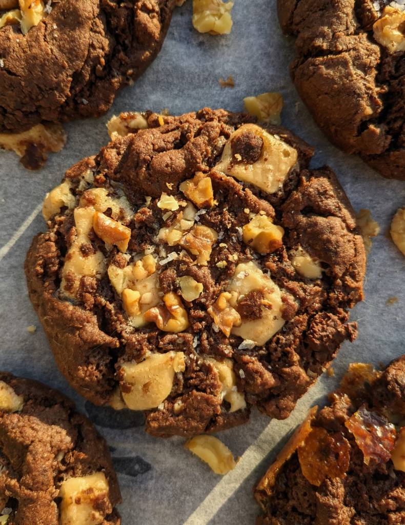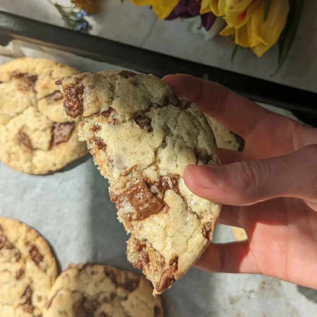 I think all of us cookie bakers assumed brown sugar was necessary for a chewy cookie, but this recipe puts us all to shame! I came up with this recipe when my pantry was lacking, I had no brown sugar (or molasses to make my own) and no aquafaba. These ingredients are usually staples in any cookie recipes of mine, but I decided to do a little baking science with the few ingredients I had access to!