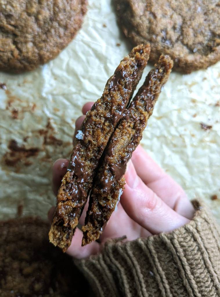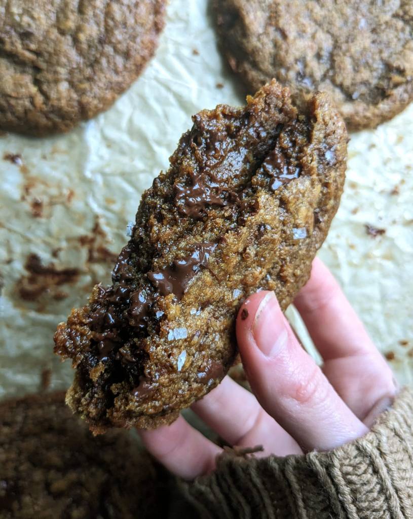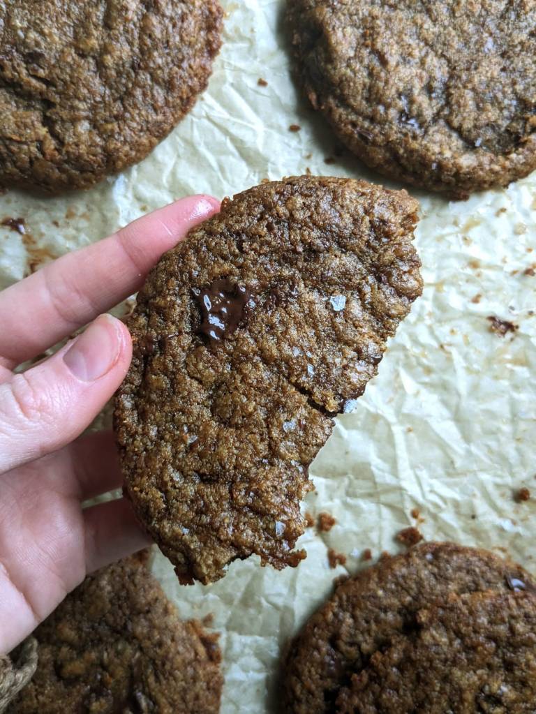 This may just be my favourite cookie recipe, in the world. Not only are they chewy, soft and slightly crisp, they are fully vegan, gluten-free and refined sugar free! They use no butter, no flour, and zero refined sugar. If your new years resolution is to follow a more plant focused/wholesome diet, these cookies are for you.
