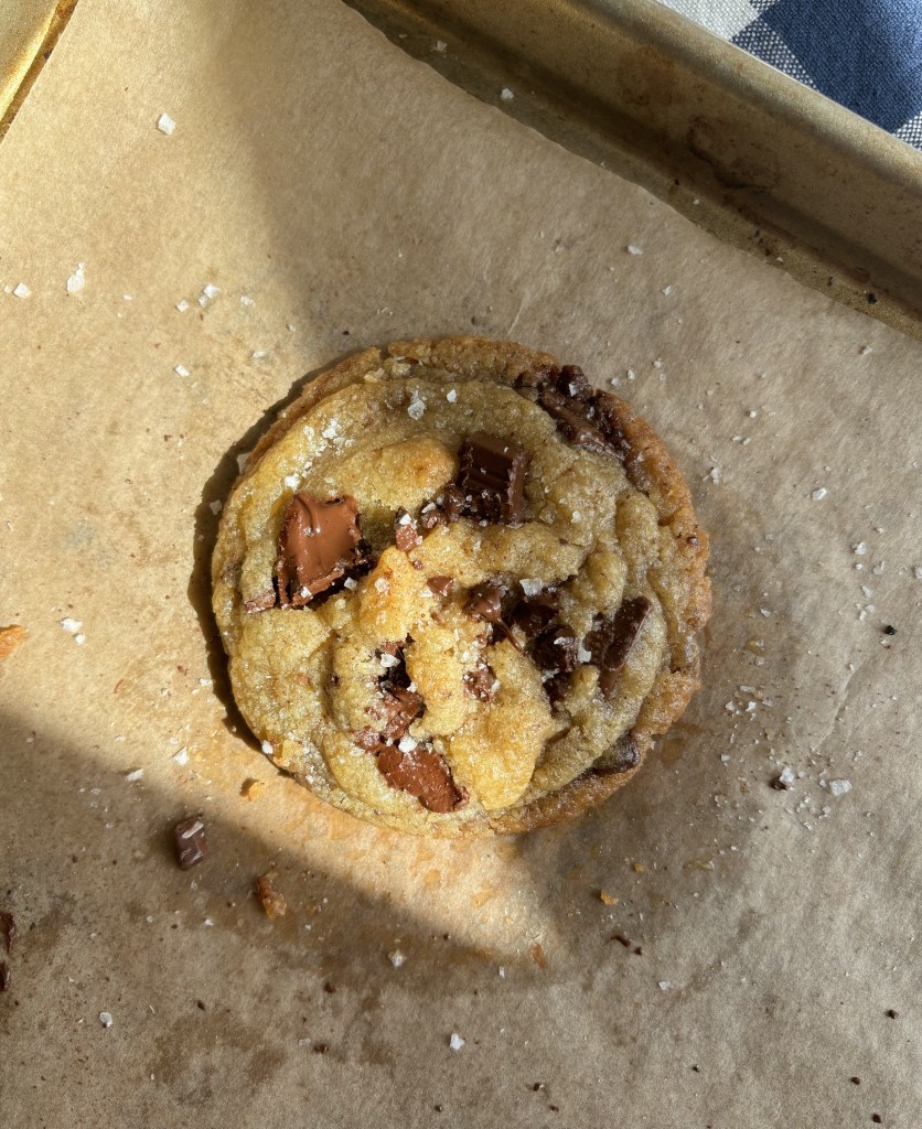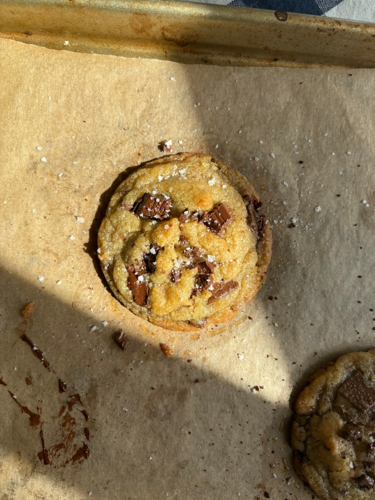 Finally, the perfected chocolate chip cookie. It’s got a slight chew, perfectly crisp edges, a soft center, and the perfect browned butter flavour. They spread to perfection whilst still remaining a little thick, and to finish it off, they are stuffed with chocolate chunks and a little flaky salt…